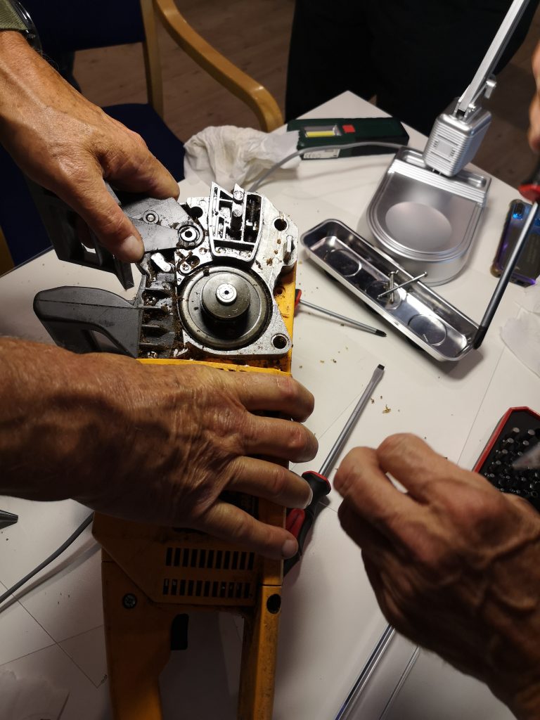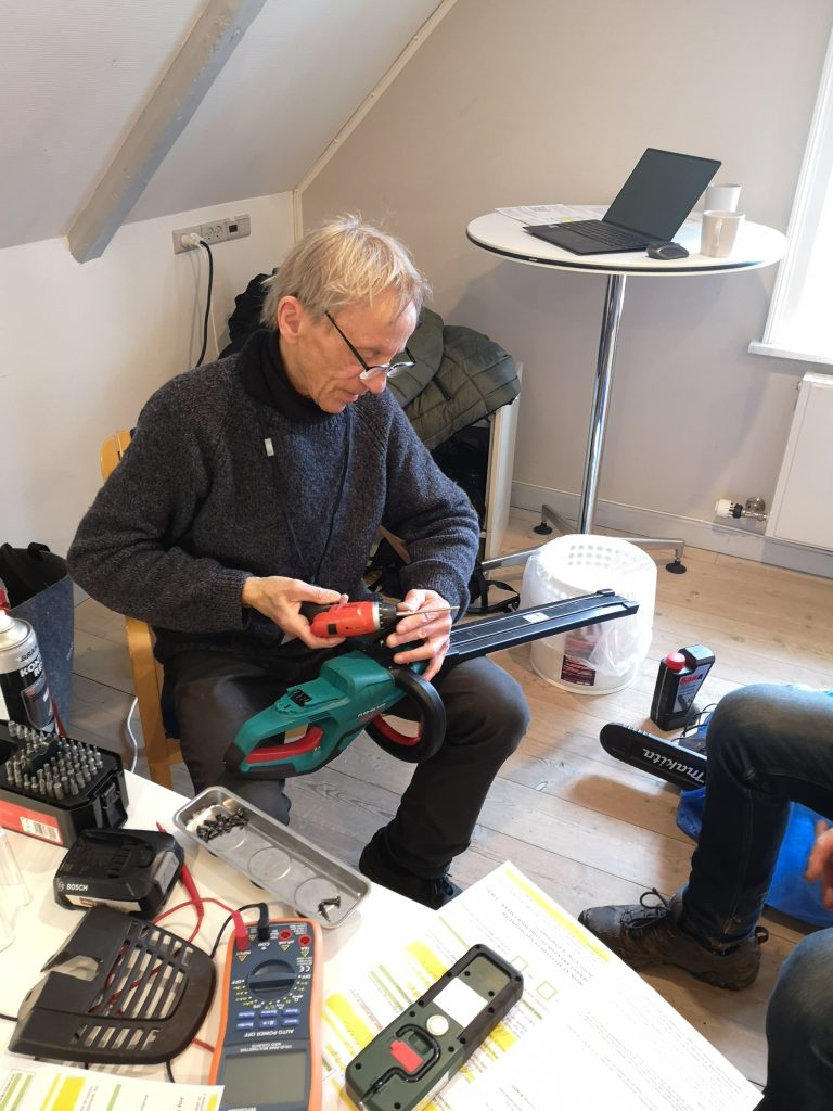 Søndagens Repair Café i Frivillighuset var igen velbesøgt, (også af interesserede borgere uden defekte ting). Der blev repareret 21 genstande, rækkende fra Bo Bojensen-dyr, symaskiner, støvsuger, CD-afspiller, kædesav, til bøger, guitar o.a. Et par ting krævede genbesøg med reservedele. Kun én ting måtte kasseres. Resultat: 36 kg sparet affald samt mange glade brugere og reparatører(fiksere).Næste café er på tirsdag d.26.10 kl 17-20 samt søndag d. 21.11 kl 14-17.