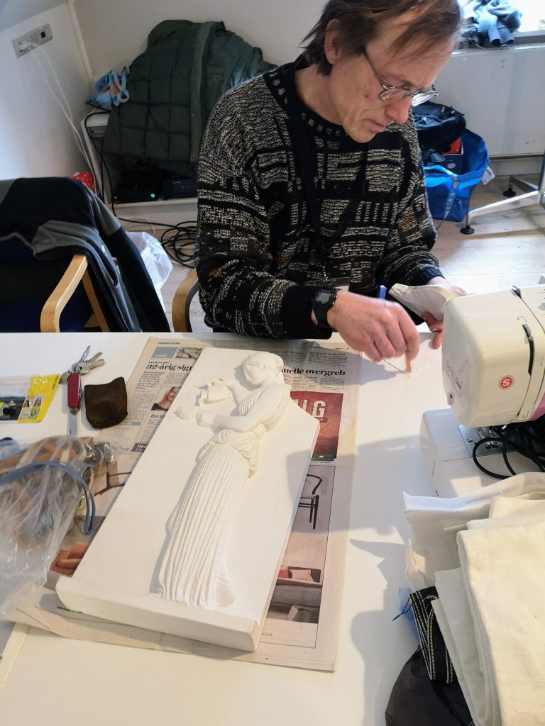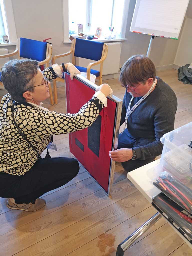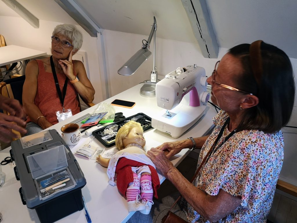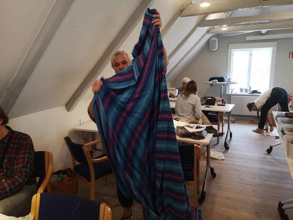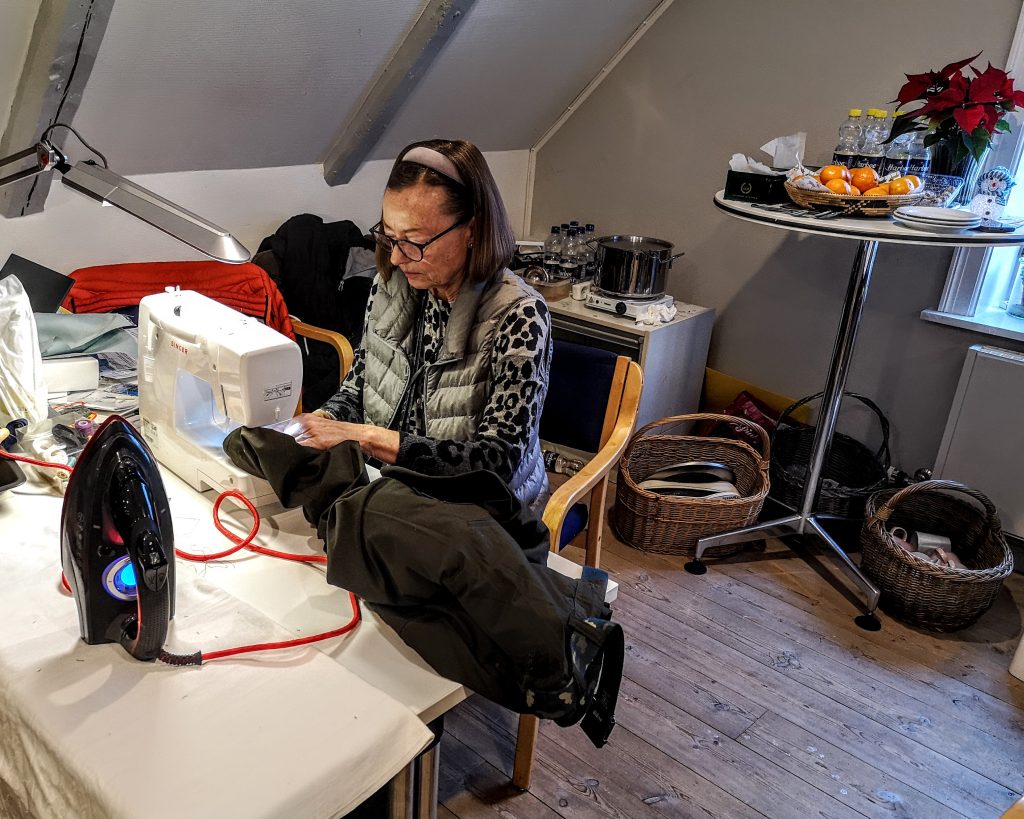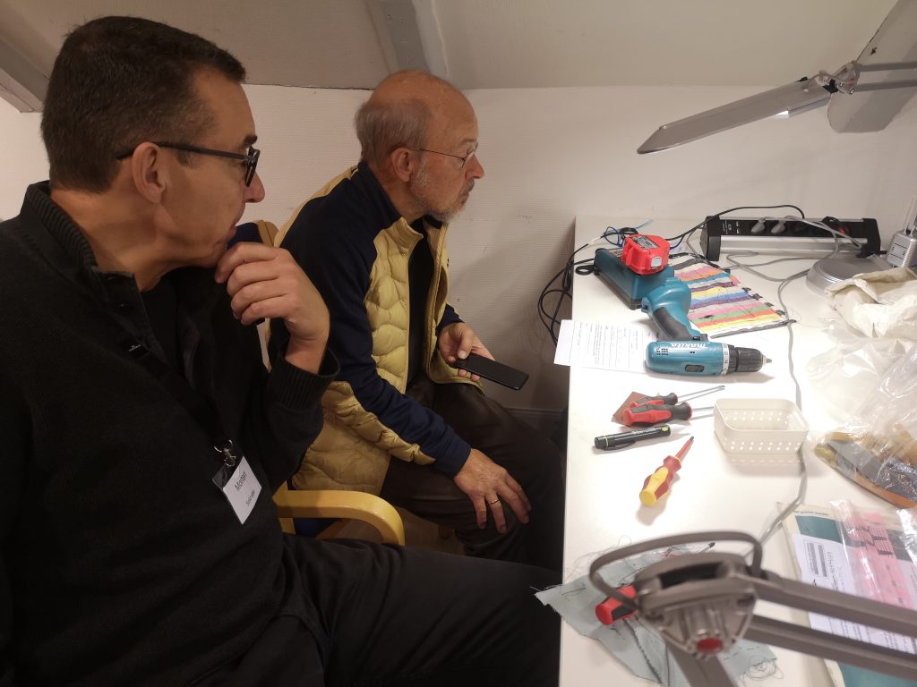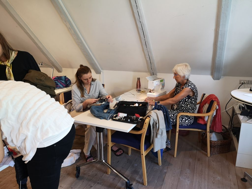 Den første reparation var en rigtig udfordring – Karin kom med en ældre symaskine, ren mekanik, hvor den ikke ville tage undertråden med op, når man syede. Vores mandlige fiksere fik sig en udfordring, de flokkedes om symaskinen, mens Karin forklarede, hvordan et sådan ting funger. Der blev diskuteret længe, kom nålen nu langt nok ned, var trådspændingen korrekt, mmm.