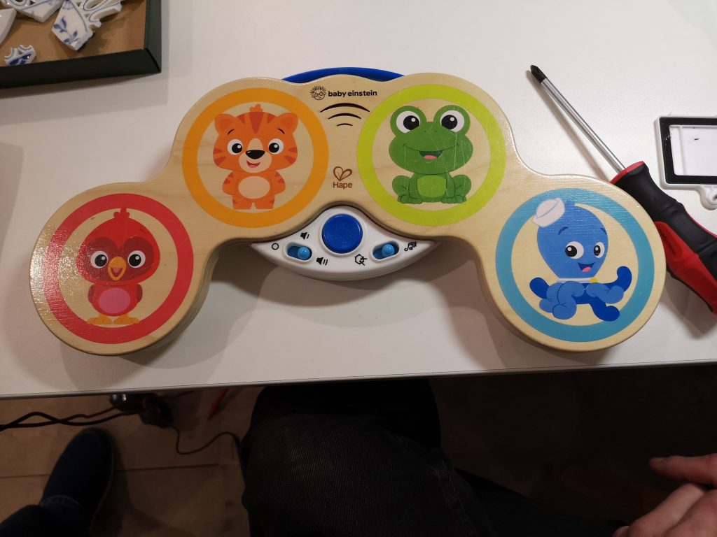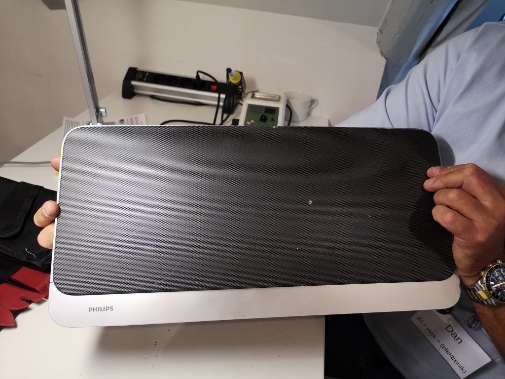 Vi havde også fingrene i en vandtæt højttaler, der havde et dårligt usb stik. Når man så endelig, med varmepistol og staniol, fik åbnet denne, var der et nyt lag, der igen var limet og svejset – så dette lille projekt blev opgivet.