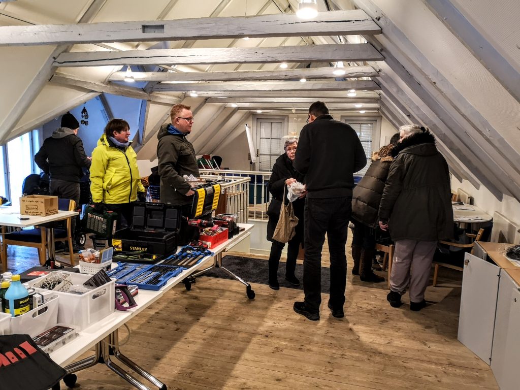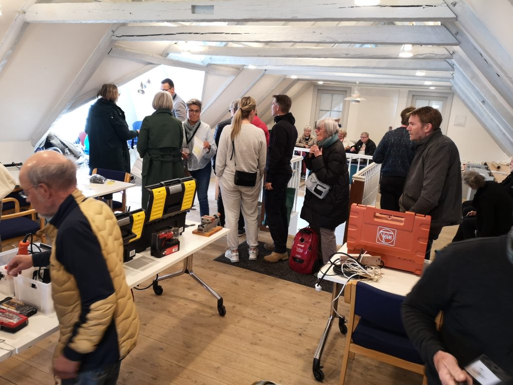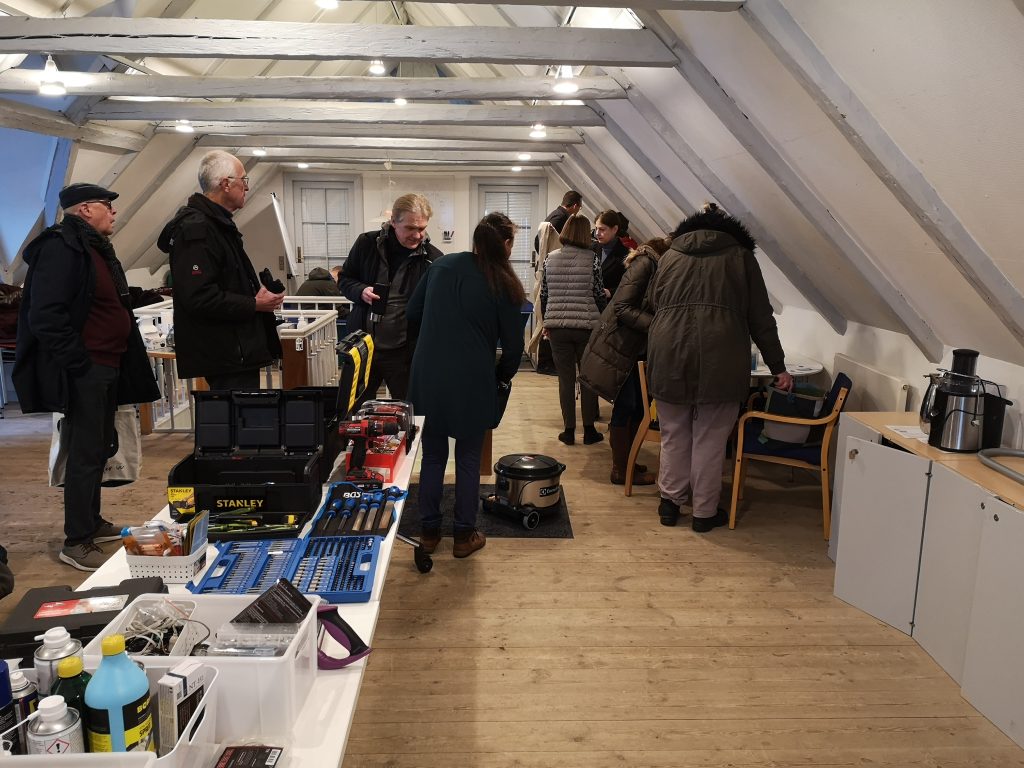 Årets første Repair café 29.1. var noget af et tilløbsstykke. Vi havde travlt, der blev indleveret 56 ting til reparation, og næsten 75% blev repareret. Der var trængsel i venteafdelingen, godt vi havde masser af kaffe og småkager til de ventende. Andre tog på biblioteket eller ud og handle imens.