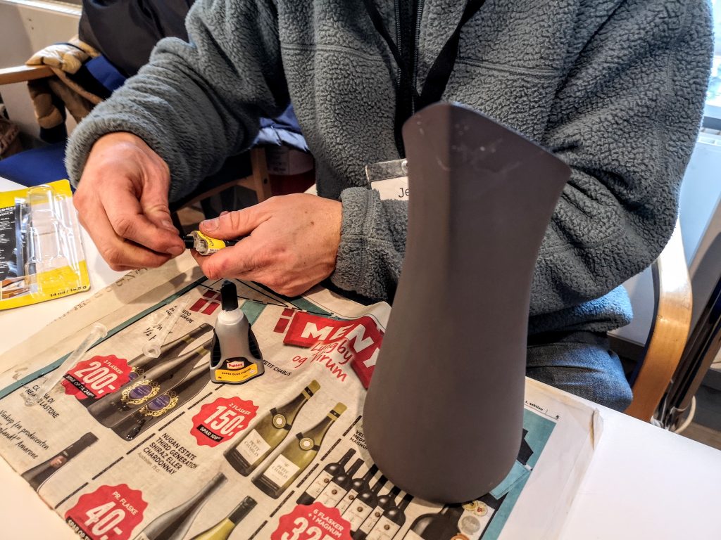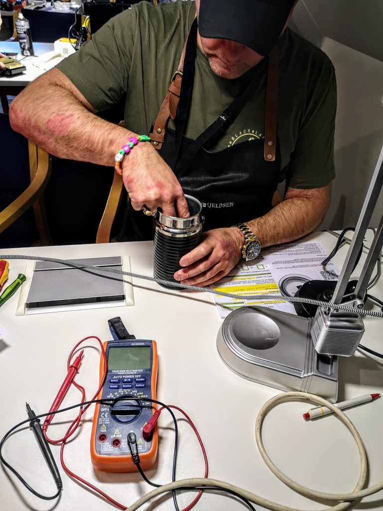 Stig fra https://www.facebook.com/RepairCafeNoerrebro/ besøgte os, og hjalp med diverse reparationer. Det er rart at møde og få hjælp fra andre Repair caféer!!