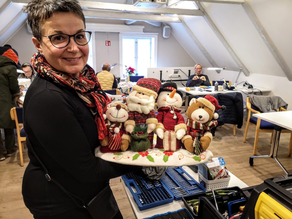Igen var der en bred variation over emnerne, et par gamle spolebåndoptagere, lamper, sågar en gammel nisse (her menes ikke de frivillige), en gammel hårtørrer, der blev skilt, så den kunne laves om til en lampe, mm.