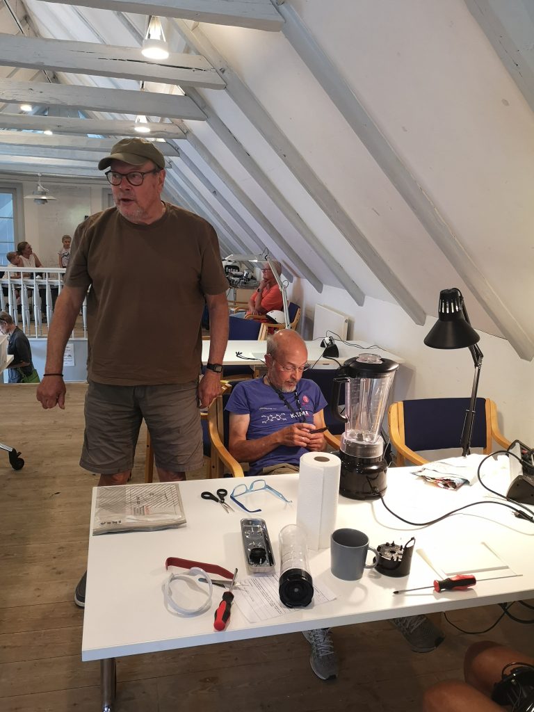 Vi er nu startet på Repair caféerne i Lyngby igen efter sommerferien. På trods af, at hovedgaden var spærret på grund af en brand i en restaurant det meste af eftermiddagen, havde vi pænt besøg det meste af eftermiddagen.